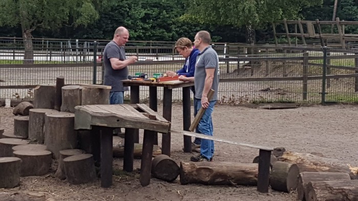 Medewerkers van Pharos Reizen kwamen met hun gezinnen gezellig een dagje klussen klaren bij Bio. In de kinderboerderij bij de Manege in ’t BioBos werd het geitenweitje uitgebreid, het Bio-bushokje kreeg een fris kleurtje en de menwagens en huifkar zijn weer fris en schoon voor onze vakantiegasten. Daarnaast sleepte het team alle oude takken, zaaghout en stronken in het BioBos de schredder in waardoor het nieuwe ‘Muzieklaantje’ - op weg naar de picknickbult - nu mooi en beter toegankelijk is, ook voor rolstoelers.