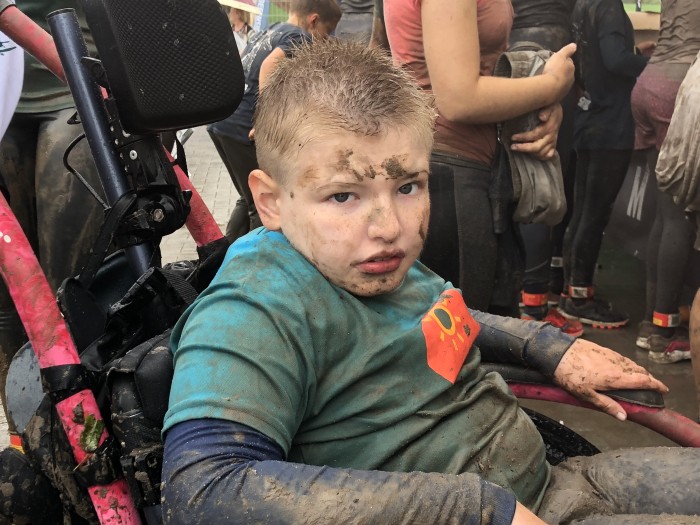 Charo (13) en Djavi (11) gingen samen met hun ouders door de modder bij de 3 km obstacle run van Mud Masters in Biddinghuizen. Zo vraagt het gezin aandacht voor het Bio Vakantieoord, het vakantiepark in Arnhem voor gezinnen met meervoudig gehandicapte kinderen.